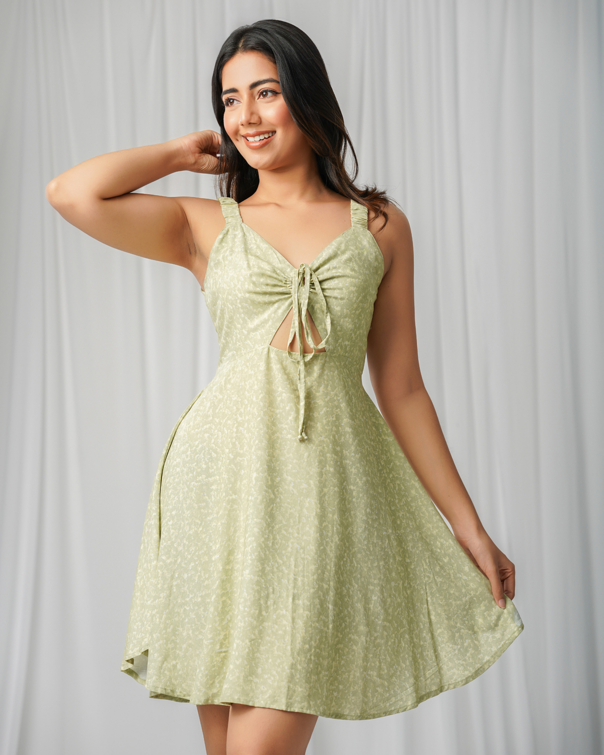 A premium viscose dress in a soothing sage shade soft, elegant, and perfect for effortless, everyday sophistication
