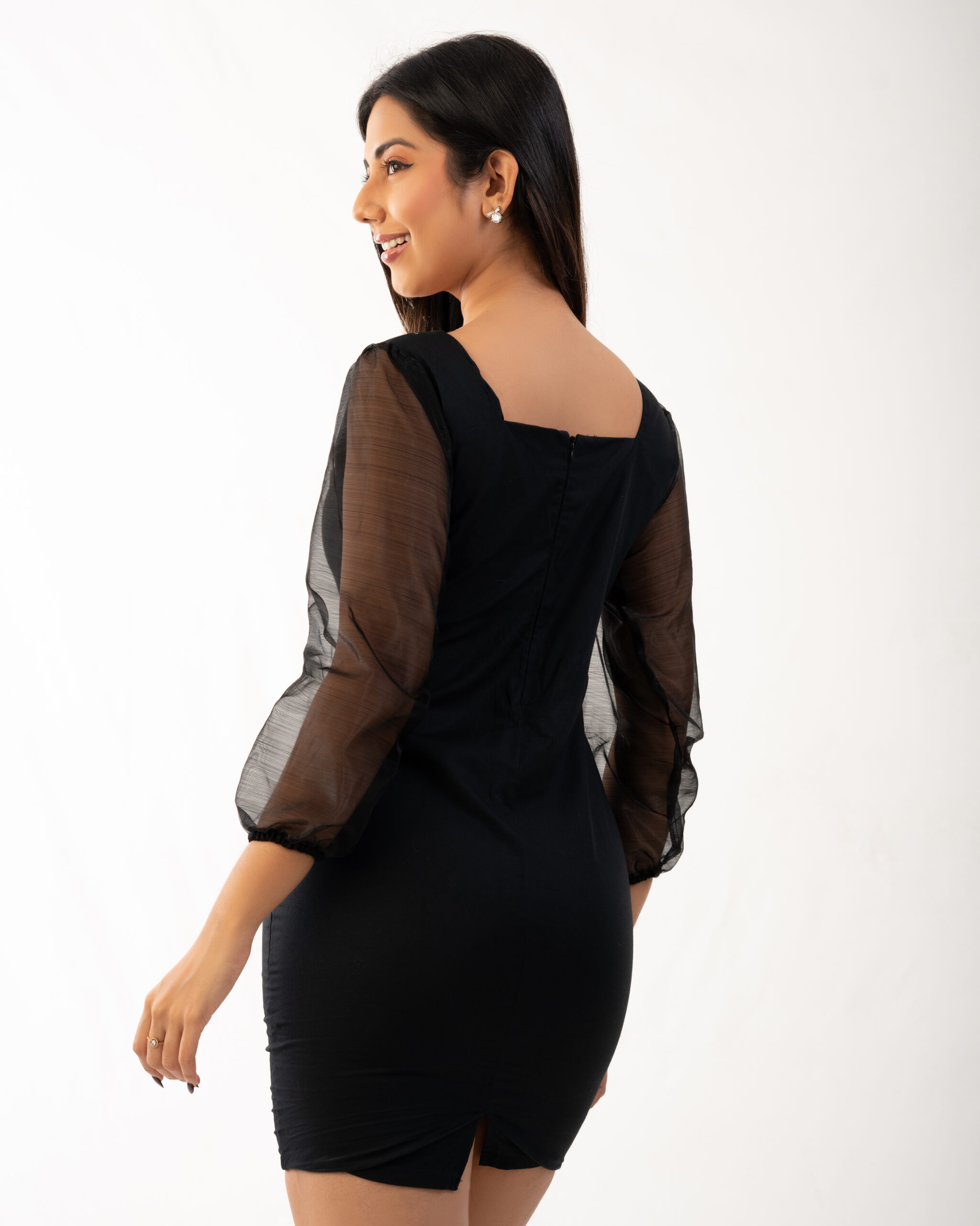 A chic black sheer mini dress crafted from soft cotton, designed for a flattering fit with a modern, effortless style