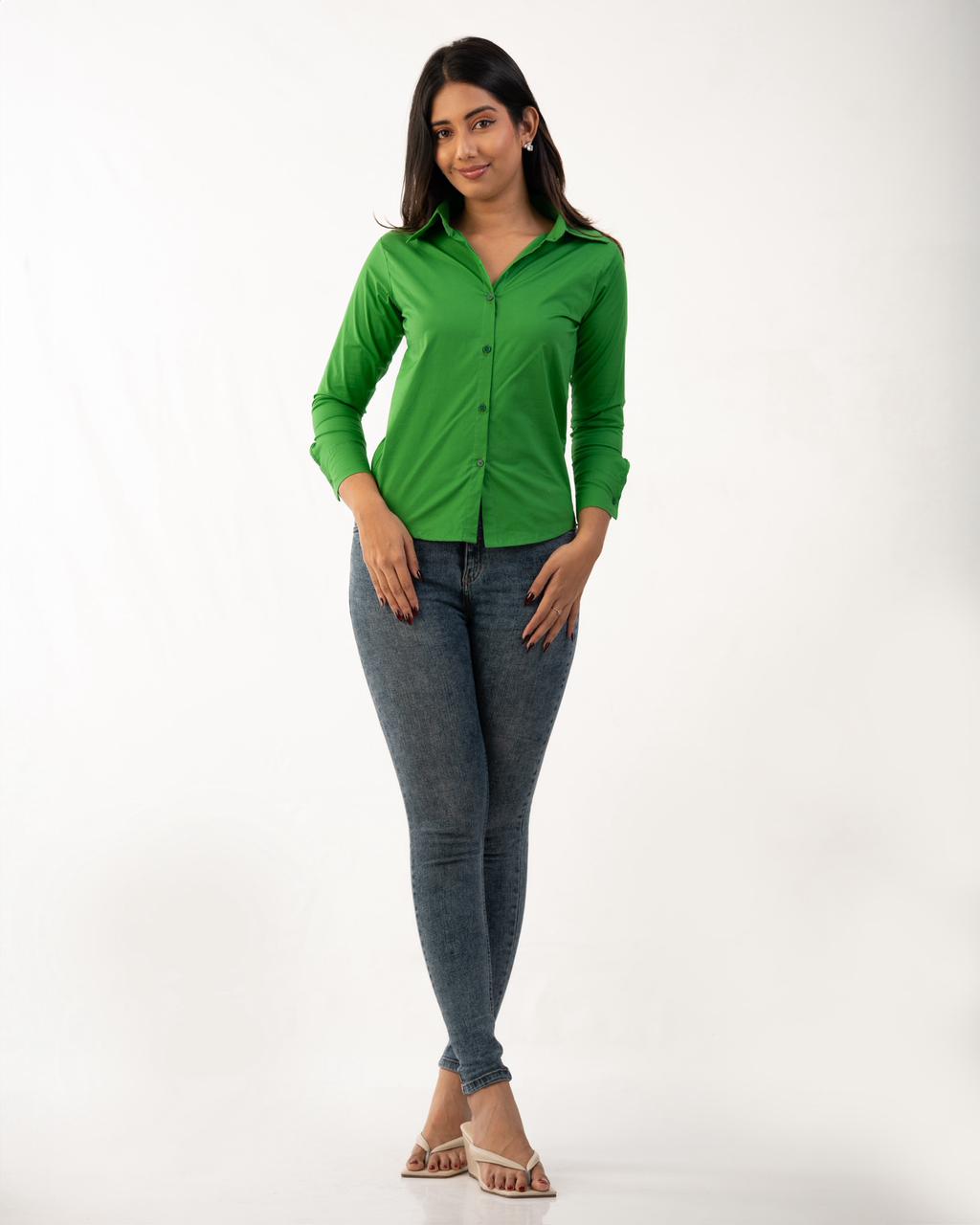 A chic green button-up shirt top for women, designed with a flattering fit, soft fabric, and versatile style-perfect for casual outings or smart everyday wear.