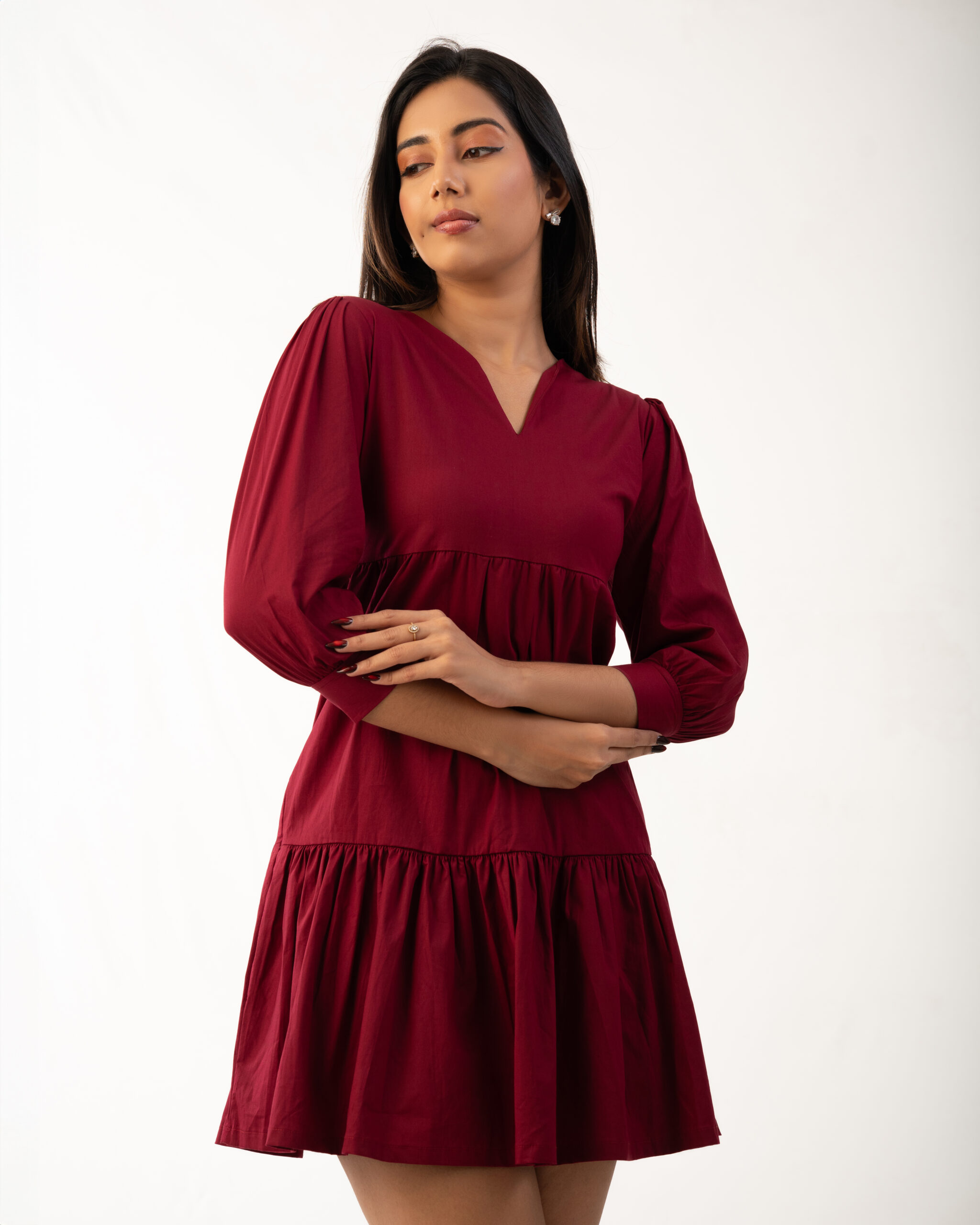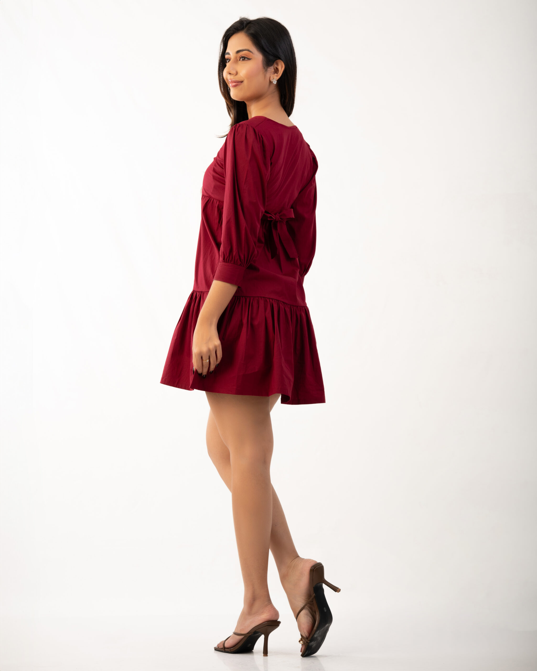 A stylish maroon short dress designed for a flattering, modern look with effortless elegance.