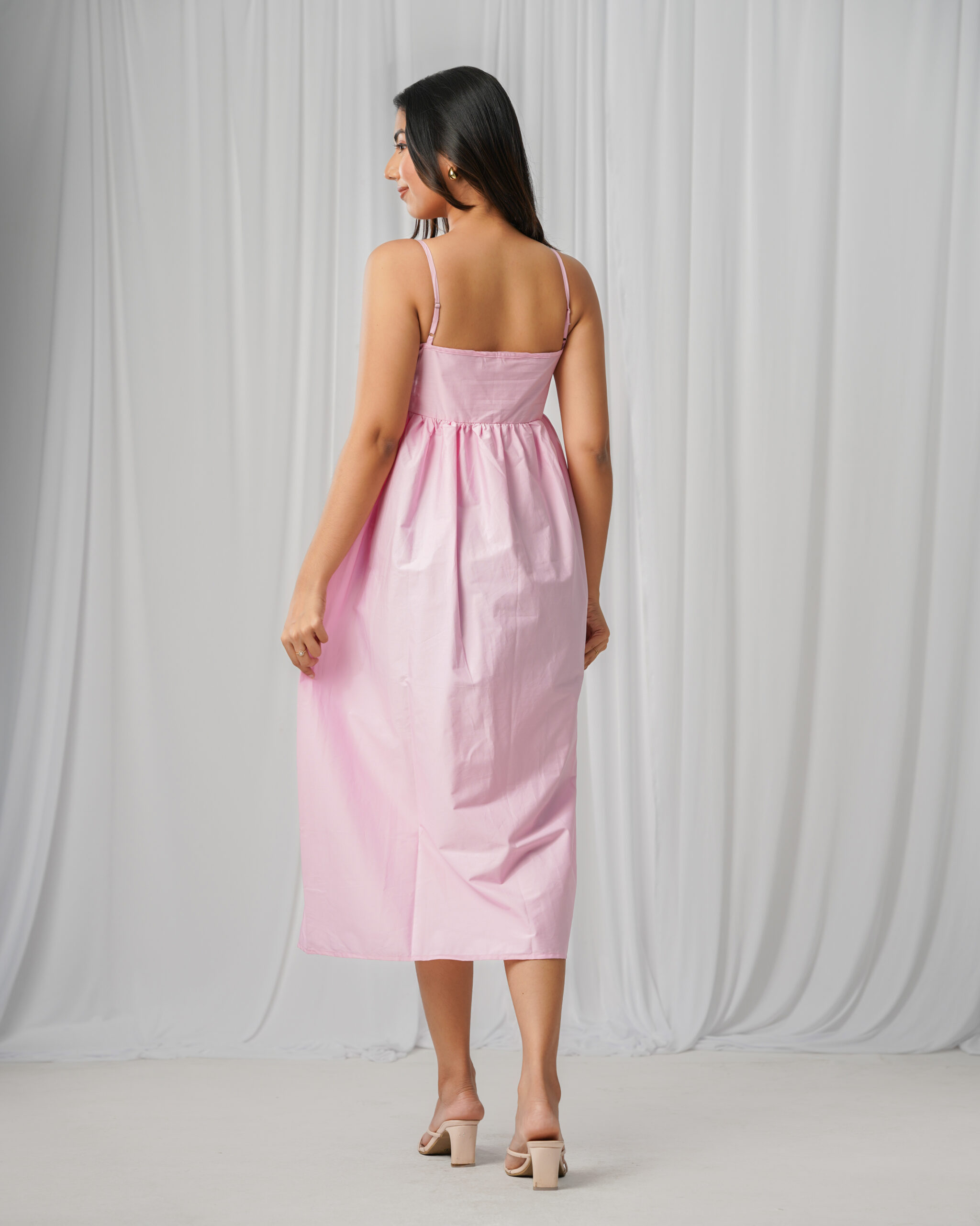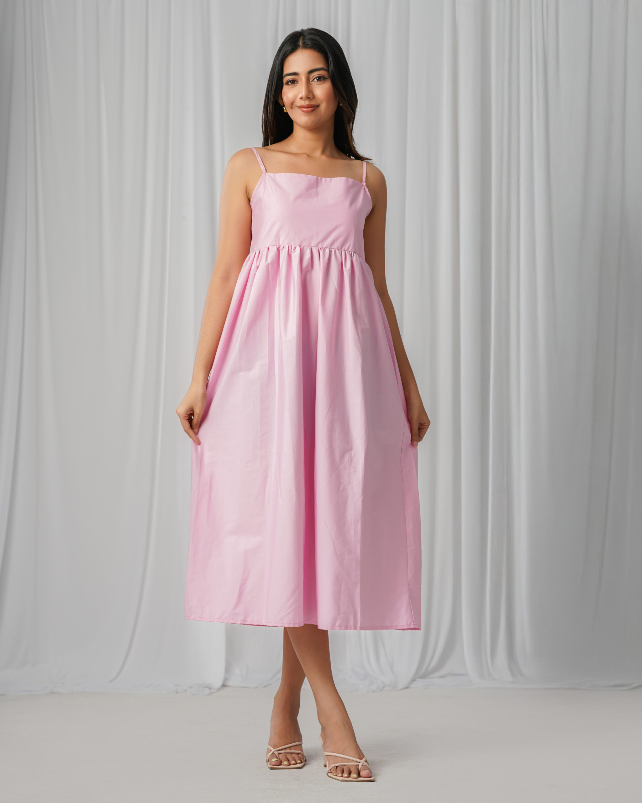 A soft, sleeveless cotton dress in delicate pastel pink—light, comfortable, and perfect for casual or everyday wear.